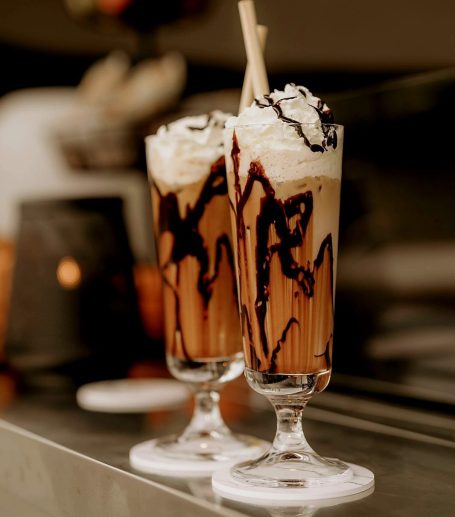 auf Wunsch mit Organic & Fairtrade Espresso, direkt aus dem Siebträger, einzigartig im Geschmack!